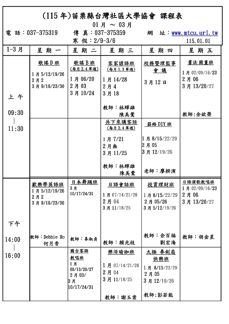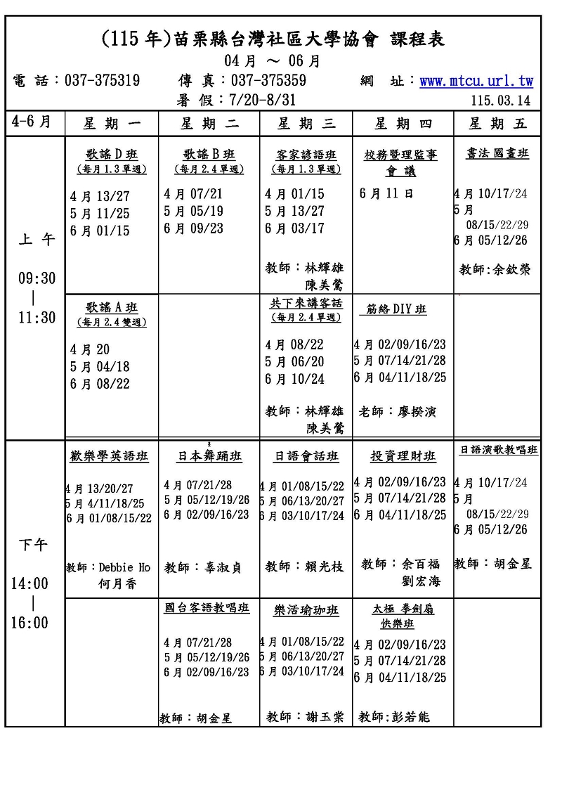 課 程 表